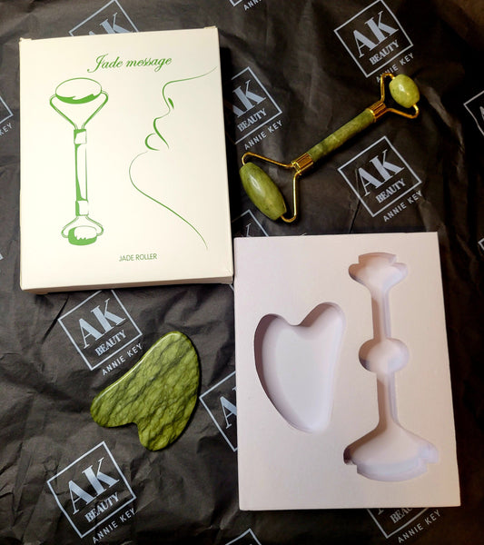 Facial spa skin face roller + gua sha GIFT SET / 100% natural jade stone set by AnnieKeyBeauty Co. / beauty gift self care body massage