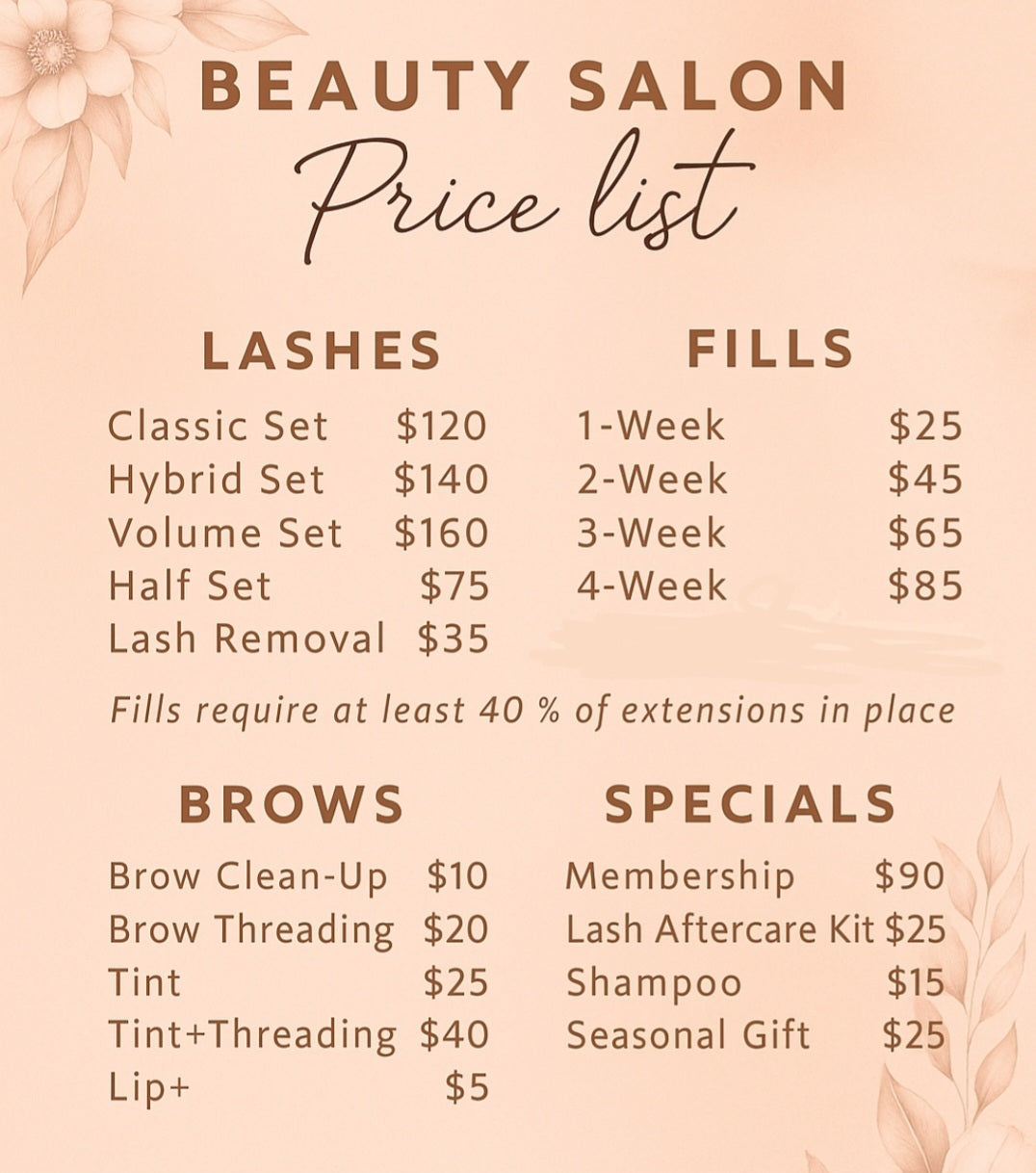 Fills (must have 40% of lashes remaining):